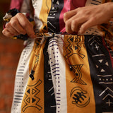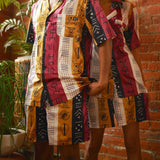 Featuring Ghanian Adinkra symbols, this is truly a one-of-a-kind garment. Its design is equal parts simple and dense, with its simple color scheme and symmetrical pattern helping it feel unified.