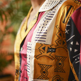 Featuring Ghanian Adinkra symbols, this is truly a one-of-a-kind garment. Its design is equal parts simple and dense, with its simple color scheme and symmetrical pattern helping it feel unified.