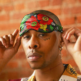 Complete satin finish on front, back, and covering of elastic (97% polyester, 3% spandex); Stretchy elastic headband.