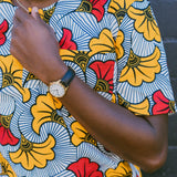 The DIOP Top, made of 100% wax print cotton, is the origin of our company. It is inspired by the beautiful custom shirts our co-founder Mapate’s mother would make for him. With prints and patterns inspired by the African diaspora, our clothes are made to be dressed up and down.